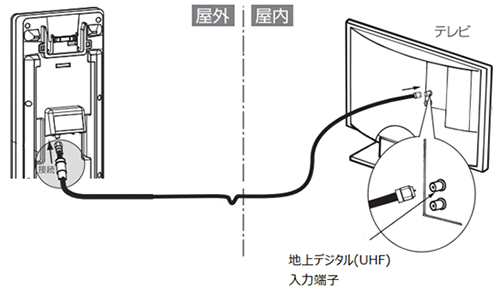 原因が「アンテナ本体」か「配線」のどちらにあるかを確認するため、テレビとアンテナをケーブルで直接つないで受信確認をしてください。