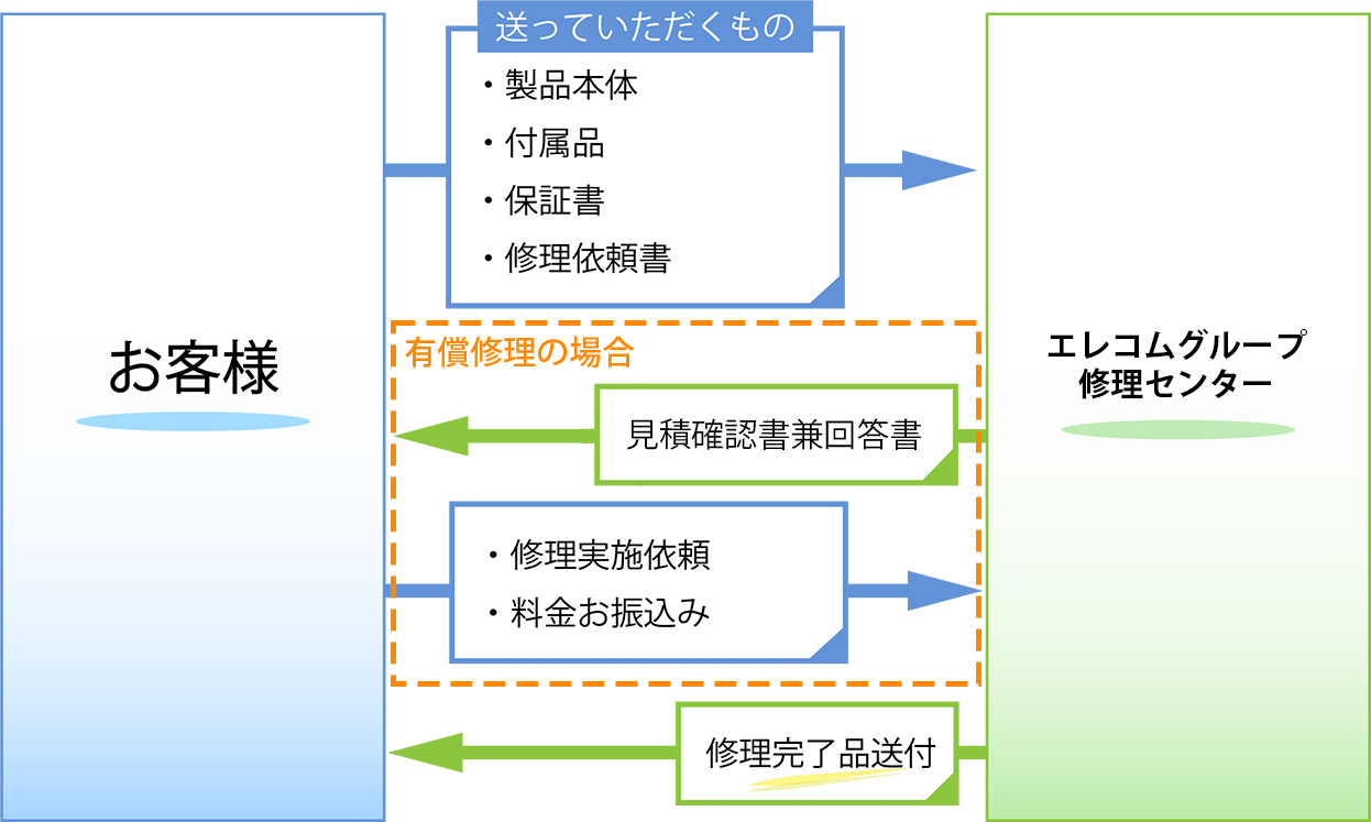 下図をご参照下さい。 修理のご依頼から修理品お届けまでの流れ