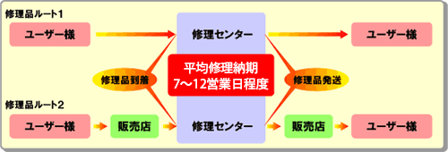 修理内容により異なりますが7営業日~12営業日程度を予定しております。 ※有償修理の場合は回答書の到着および銀行振り込み確認後 ただし修理依頼製品や修理内容により、長期日数を要する場合がございますので予めご了承下さい。