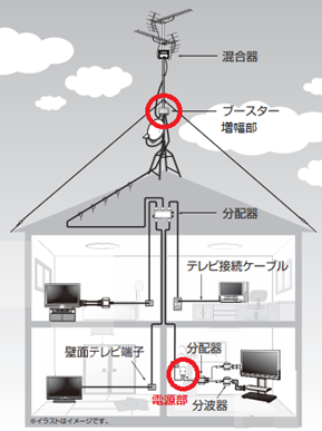 ブースター増幅部と電源部は必ずセットで設置します。