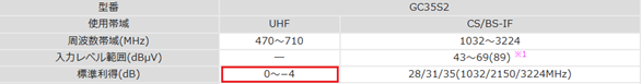 例:GC35S2 衛星放送のみ増幅するブースター